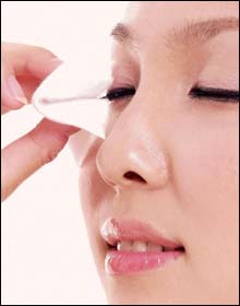 仔细清理睫毛 将化妆绵折成适当大小,轻轻夹住睫毛,由睫毛根部向睫毛尖端慢慢移动。让顽固的睫毛膏被彻底清除。