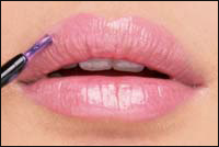Step1用唇刷修整出弧度优美的唇部外轮廓,增加双唇丰盈度。