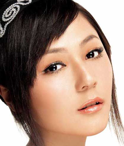 从鼻梁近眼角处开始,在鼻侧各画一道轮廓色(可用棕栗色眼影代替),以使得鼻子看起来更窄,仔细涂匀;其次沿鼻梁中间线从上至下画一条高光色,使焦点集中在中间,而不是两边,并且仔细涂匀。