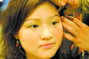 唇部一般用较亮的暖色调,有少许鲜艳的感觉。腮红的诀窍是,稍稍扫高一点,这样会显得甜美可爱。
