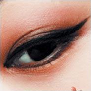 细而长的眼睛别具东方的魅惑,描画的时候建议用眼线液,这样才能更加突出眼睛的轮廓。在上眼眼尾的地方要稍稍向上描画,然后用棉棒扫匀。画下眼线的时候,从内侧向中间开始画,画到平视时,瞳孔下方的位置就可以了。