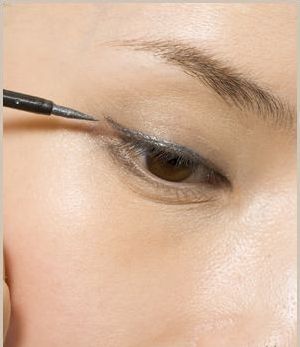 步骤5 稍稍提高一下上眼皮,从眼尾向中间,然后从中间向眼头分两次画眼线,这样不容易失败哦!