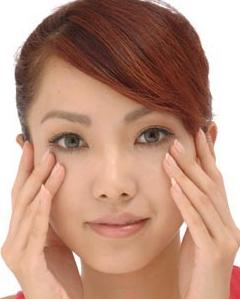 先以无名指按于眼头位置,在以指腹沿下眼睑轻轻按摩。