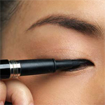 外眼角的处理非常重要。标准的眼线应该在外眼角由宽到细自然消失,此时,立起笔尖描画,但不要用手拉起眼皮以免妆容走形。
