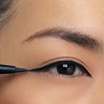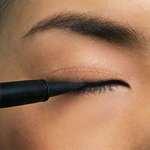 眼线笔的笔尖尽量放平,轻轻贴住睫毛根部描画,这样有助于控制力度与线条的走向,画出的眼线平滑流畅、自然真实。