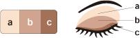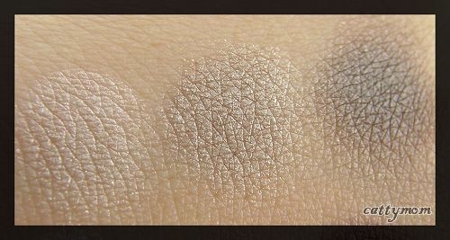 日本官网上说明了最容易上手,也不容易失误的渐层画法最浅色为珠光浅肤色,重点色为珠光灰褐色有细致亮粉,最深色为珠光深灰褐色。