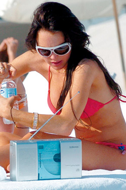 Lindsay Lohan 半透明的白框墨镜,它本身就是一件最in单品,给海滩上的她提亮。