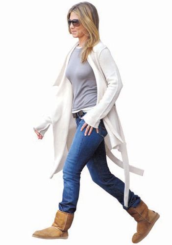 点评:Jennifer-Aniston随意穿搭的白色毛衣潇洒大方,包裹着灰色T恤与蓝色牛仔裤的冷漠,尽情演绎她身上带有的独特魅力。