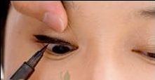 步骤3、最后再用眼线液沿着眼皮的内侧描画出黑色眼线,这样能够增加眼睛的深邃和立体的感觉。