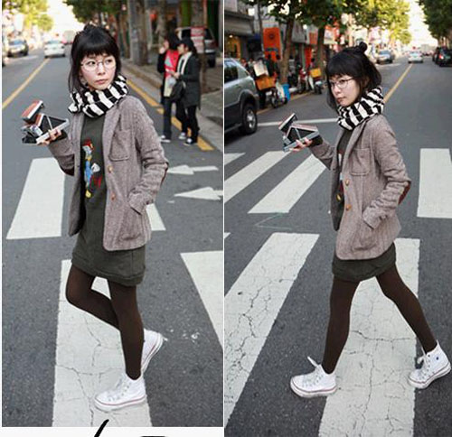 女生黑框眼镜+丝袜的绝色搭配