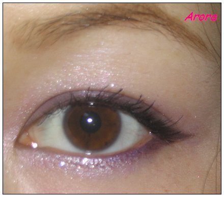 画法很简单,就是浅粉色块打底,淡紫色化眼窝和下眼线,然后visee双头笔中深色头勾画上下眼线。下眼头用银色亮片膏打亮。