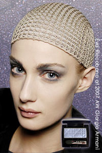 不知道应该如何界定这样的色彩,可以说是蓝或绿但都带有一种灰调感。 MAC全球彩妆创意总监Gordon Espinet说:「在纽约秀场上,许多彩妆师都运用到深色的眼妆,而且是以烟熏的手法完成,颜色则从灰色到水鸭般的蓝色都有,最重要的是,灰蓝色彩似乎已经变成最in的黑色。」
