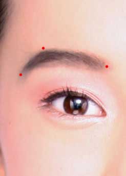 1.确定眉头、眉峰、眉尾的位置,眉毛的宽度最好是眼睛的四分之三;用眉笔点出眉头、眉峰、眉尾的位置。