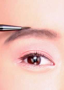 2.由于眉毛比较粗,因此需要将上下眉线勾勒出来,再用颜色把它填满,建议用灰色的眉笔或眉刷,画出来会比较自然。