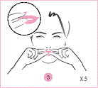 沿着唇部轮廓,以拇指和食指指尖轻快捏压肌肤。需以与细纹相同的角度捏压。重复五次。