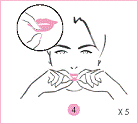 以拇指和食指的指腹,沿着下唇进行深捏,接着在上唇重复相同动作,自唇部中央向嘴角朝外按摩。重复五次。