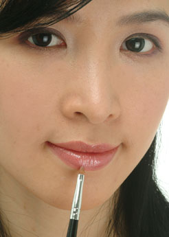 Step3:再用唇刷,将画好的唇线向内晕染。效果自然有立体感。