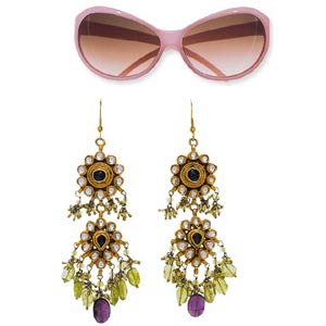 配精致的花形耳环,注意最下面的绿叶和紫色吊坠,神秘而优雅……你就是异域风景。