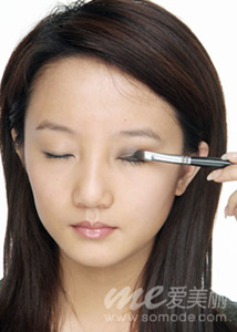 闭眼,在外眼窝处涂一些深咖啡色,再涂黑色眼影后层次会有渐变。