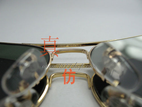 下图中鼻梁下方有RAYBAN及规格的刻字,此是真假雷朋最简单的区别方法。