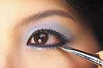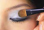 b、在靠近眼皮的部分,用刷子沾取粉状且颜色较深的眼影刷上,可以用深浅不同的色彩营造出眼部的立体感。