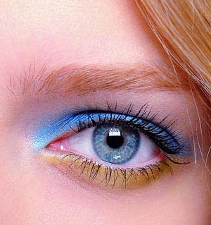 ③珠光蓝色眼影代替了死板的眼线,和明黄色搭配自然又不夸张。