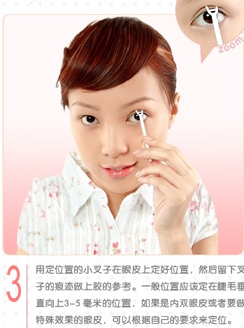 第二步:用内附的Y形小叉子,轻轻在眼皮按压,压出双眼皮的摺痕