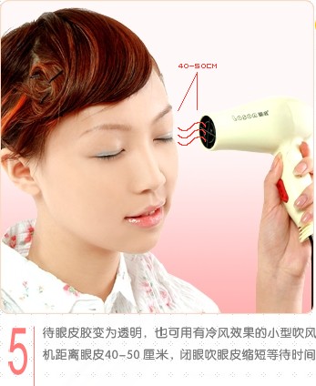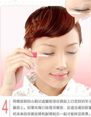 第三步:先闭眼,把胶水涂脂抹在压后的痕迹和靠近睫毛那一区 好用的双眼皮胶