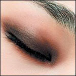 深色眼影能让眼睛看起来更晶亮,特别是黑色或是褐色的眼睛,涂抹的时候,可以用棕色系先扫上一层底色,然后在靠近眼睛的地方涂上一层更深一色度的颜色。深色的眼影能够让眼睛更加神采飞扬,更加明亮。最后在眉头的地方也可以扫上一些同一色系的,但带有一些闪亮成分的眼影。