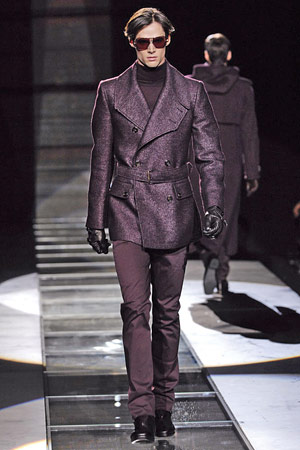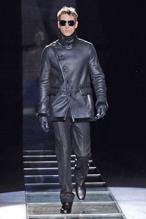 我们坐着等待Beyoncé 和 Jay-Z来到米兰范思哲最新鲜的秀场。这个系列被称为是“一个能温暖女人心的男人衣橱”,Knowles女士在她这一季的服装中运用了很多超级英雄的元素,就像是强有力的肩部和像披风一样的黑夹克。不过当模特走上T台的时候,设计师脑子里浮现的不是超人。她想到的是她崇拜的艺术装饰家Tamara de Lempicka 画中的男子。