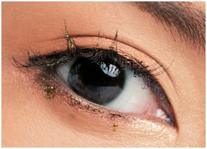 集中感的黑色睫毛膏强调睫毛根部。为了拉开睫毛和眼睑的色彩,选择黑色睫毛膏在睫毛根部横向左右摆动涂抹,使视觉焦点更加集中!
