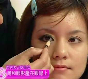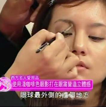 1、首先用淡咖啡色眼影打出眼窝哦,记得颜色别太深