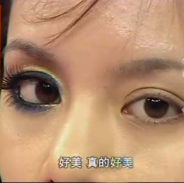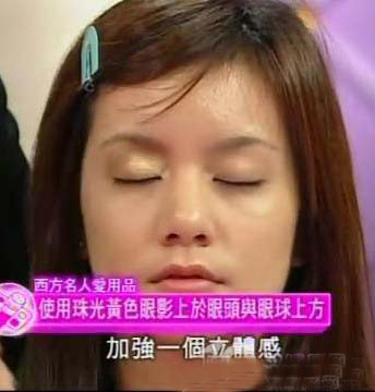 2、然后用颜色饱和度高的黄色或者金色打在上眼皮前面哦