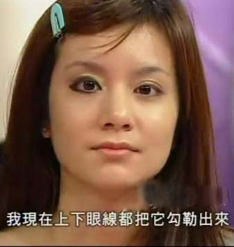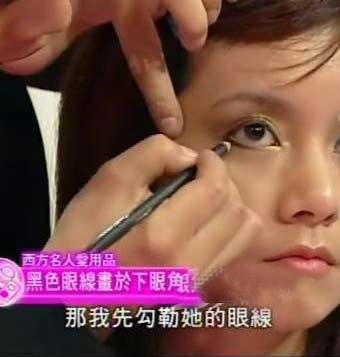 3、然后开始勾勒眼线下眼线记得后粗前细上下眼尾要连起来画粗点没关系等下会被眼影盖掉