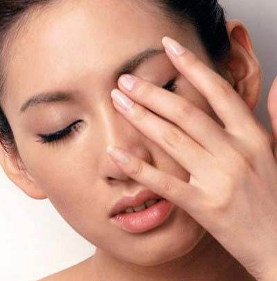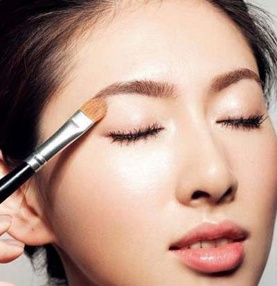 3在上眼睑整个眼窝处使用深色眼影,遵循立体原则大面积涂抹