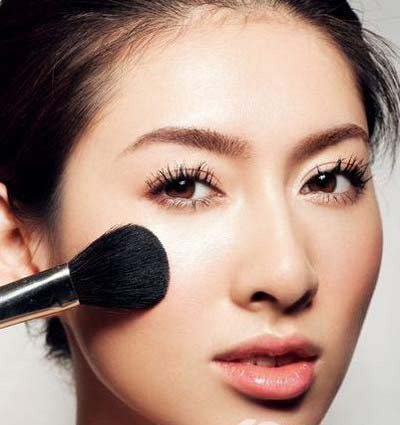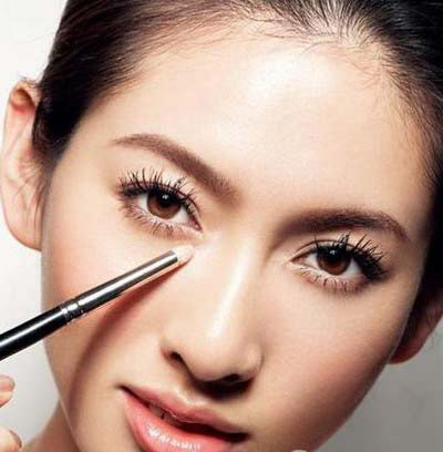 4用稍细圆形刷子,以画半圆的方式刷抹眼角上下区域