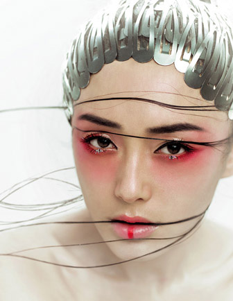 之前的复古系列曾经示范过中国味十足的“凤眼”,在后眼角位拉出慵懒的一笔,给人风情万种之感,如今就轮到现代感强一点的勾眼,造型重点在前眼角拉出一条与眼线相连的黑线,让眼睛看上去更大更性感。但是要注意的是,眼距比较窄的MM不适宜作此尝试,这也许会不小心造成“斗鸡眼”的悲剧发生。自己对镜描眼线的时候,一定要睁开眼睛,让线条平滑地过度,要不左右一大一小就非常难看了。