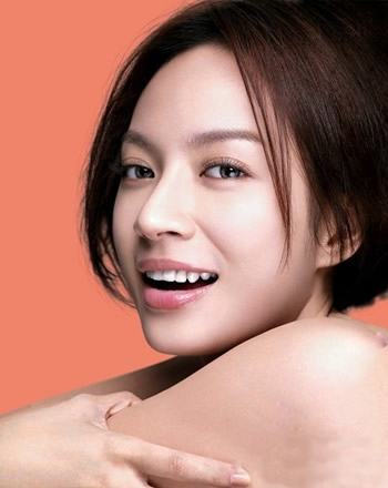 双唇以手指涂抹带点肤咖啡色的唇蜜,最后再于唇峰重复加强点上去,双唇会变得超丰润与立体。
