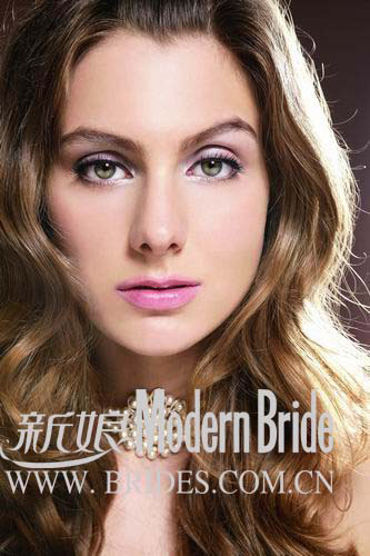 两颊只需两颊上轻扫一些淡淡的粉色,让面容显出新娘特有的羞涩红晕来。