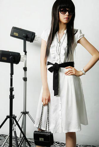 太阳眼镜点燃酷感印象,而衬衫式连衣裙文雅气质不可忽视,黑色蝴蝶结腰带,让整个人酷劲十足的装扮下,流露出淑女风范。