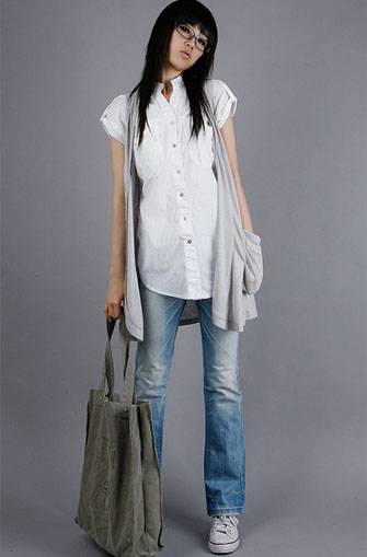 严谨的自己想要一点变化,让认真的自己颓废一点,散漫一点,慵懒的外套和斯文认真的黑款眼镜总能把握好这样的分寸。