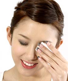 Step2用化妆棉蘸眼部专用卸妆液在眼部轻按5秒让它有充分的时间溶解睫毛眼线上的防水成分