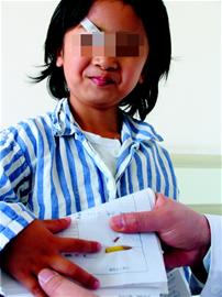 5岁的玲玲告诉记者说:“就是这块铅笔木屑在我的眼眶里呆了1年。”