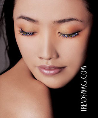 ◆ 为了让眼睛看起来更具戏剧效果,可以试试假睫毛。用镊子在睫毛上蘸一点胶水,然后把假睫毛粘在离外眼角三分之一处。通常三组就已足够。切记:选用标明“自然接口”假睫毛,结合处可以自然掩在眼线中。