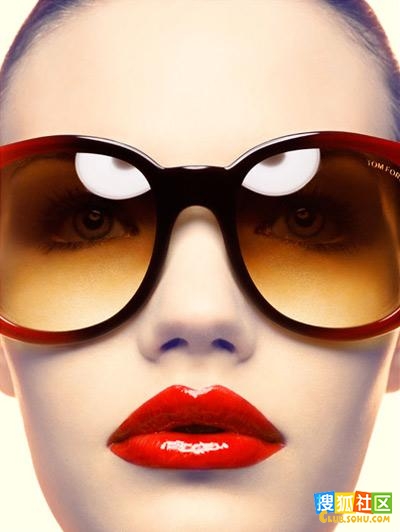 唇色搭配彩色太阳镜
