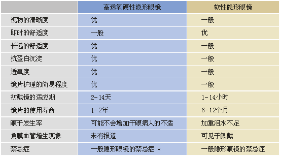 高透氧硬性隐形眼镜与软性隐形眼镜的比较