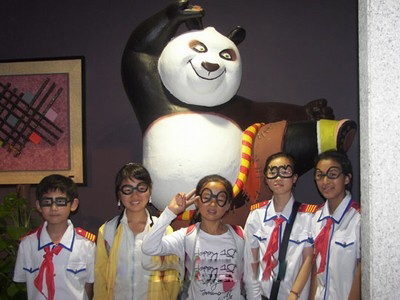 新浪娱乐讯 为配合《功夫熊猫》的宣传,丰富孩子们的暑期生活,上海万达(blog)影城与著名儿童早教品牌BabyArt上周末联合举办了“熊猫眼镜”手工课活动。来自安徽希望小学的孩子们与上海的小朋友们一起动手制作“熊猫眼镜”,度过了一个开心周末。