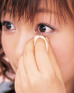 先把棉签稍微蘸水弄潮湿,拭去下眼睑晕染上的睫毛膏。