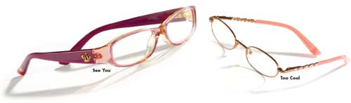 Sàfilo USA全新Juicy Girls光学镜系列专为年龄在7岁至13岁之间的女孩设计。新系列中,两款(Julie 和See You)采用塑料材质,另两款(Sunshine和Too Cool)由塑料和金属混合制成。颜色范围包括淡紫色、粉色、棕色和黄褐色有等。此外,所有镜框均配以弹簧铰链。