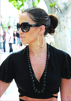 戴着可以遮住半张脸的黑色太阳镜的詹妮弗·洛佩兹